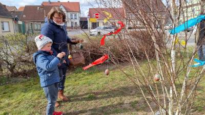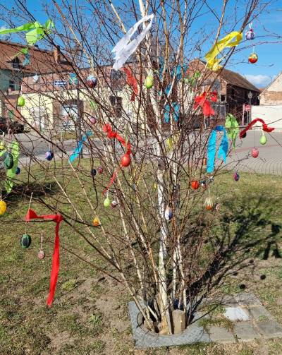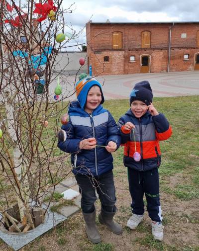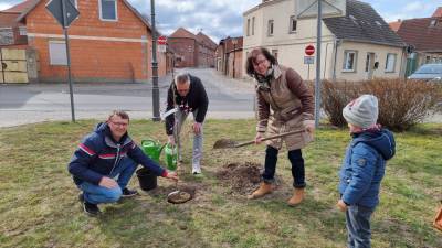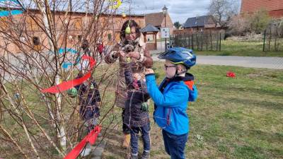 Heute fand zum ersten Mal das Schmuecken des Osterbaumes in Jerichow statt. Die Kinder hingen selbst gestaltete Ostereier an den Baum. Gleichzeitig wurde ein Pfirsichbaum gepflanzt, der von der Firma Optik Schroeder gesponsert wurde. In den naechsten Jahren soll dieser als Osterbaum dienen.