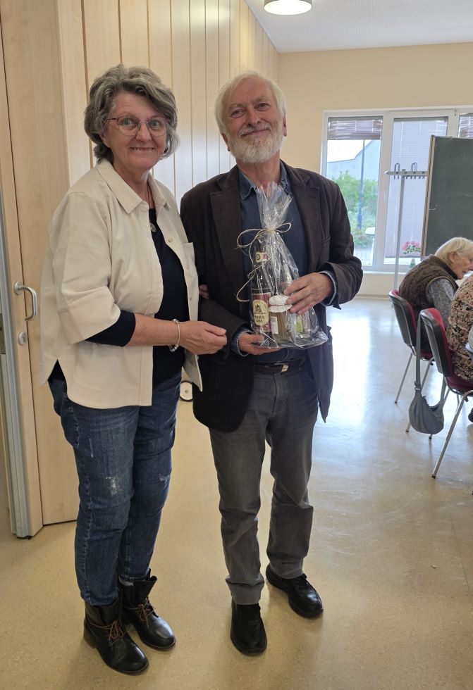 Mit kräftigem Applaus dankten die Zuhörer für eine facettenreiche und unterhaltsame Lesung. Ein herzliches Dankeschön galt auch Frau Woitzik vom Bürgerhaus, die in der Pause mit Kaffee und Kuchen für das leibliche Wohl gesorgt hatte. Zum Abschluss überreichte sie Ulrich Kriehn ein kleines Präsent. Ein letztes gemeinsames Herbstlied bildete den stimmungsvollen Ausklang des Abends.